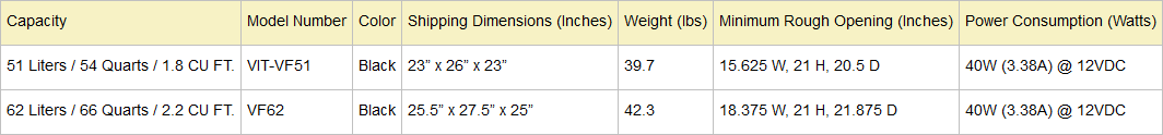 - Efficient Cooling: 12 VDC compressor-driven combo refrigerator/freezer with a power consumption of 40W.