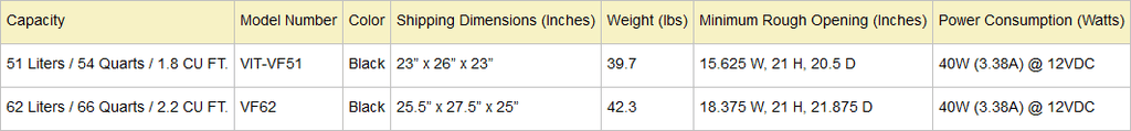 - Capacity: 62 Liters / 66 Quarts / 2.2 CU FT.
