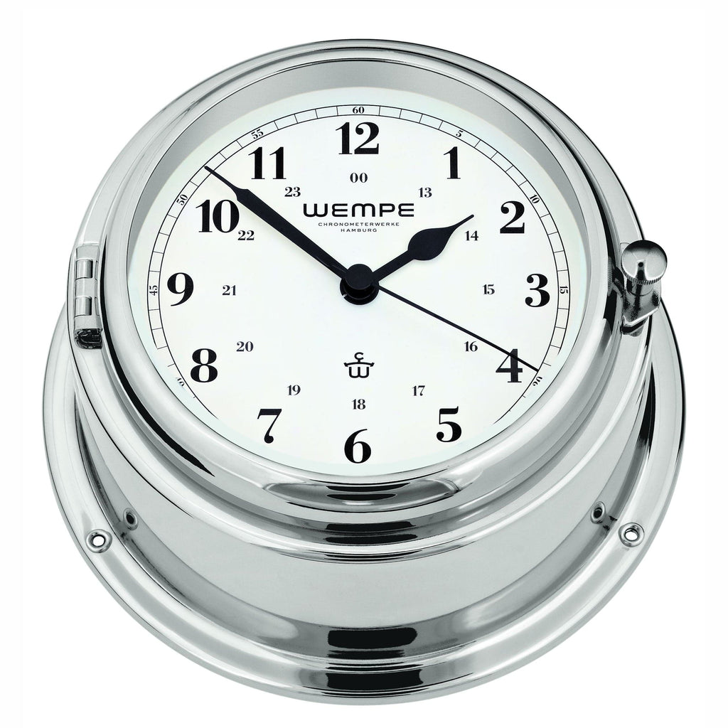 CW360004 Bremen II Brass Chrome Plated Striking Bell Clock 150 X 75mm White/Black Arab.