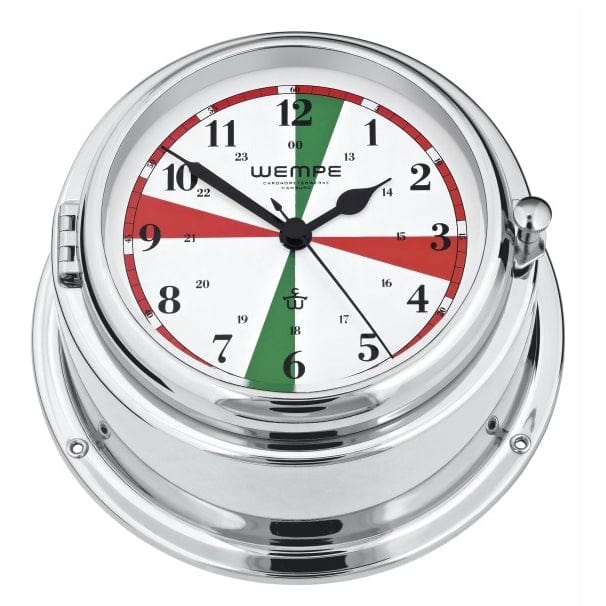 Wempe CW360008 Bremen II Brass Chrome Plated Radioroom Clock W/ Silent Sectors Quartz 150 X 75mm White/Black Arab.