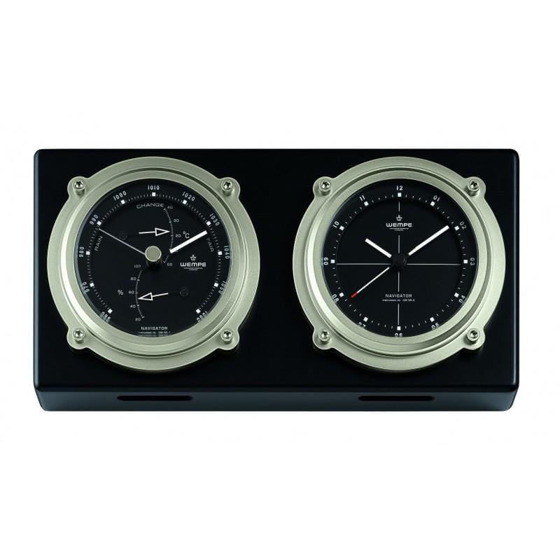 Wempe CW550008 Navigator II Brass Nickel Plated/Black Quartz Clock/Baro/Therm/Hygr 300x150 mm Black/White Arab. Luminova