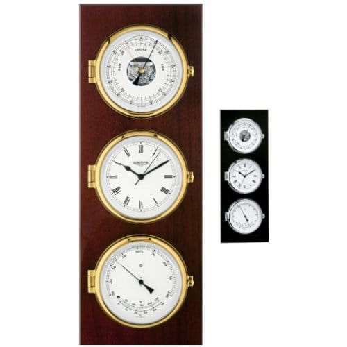 CW600009 Elegance Brass/Mahogany Quartz Clock/Baro/Therm/Hygr 600 x 200 White/Black Roman