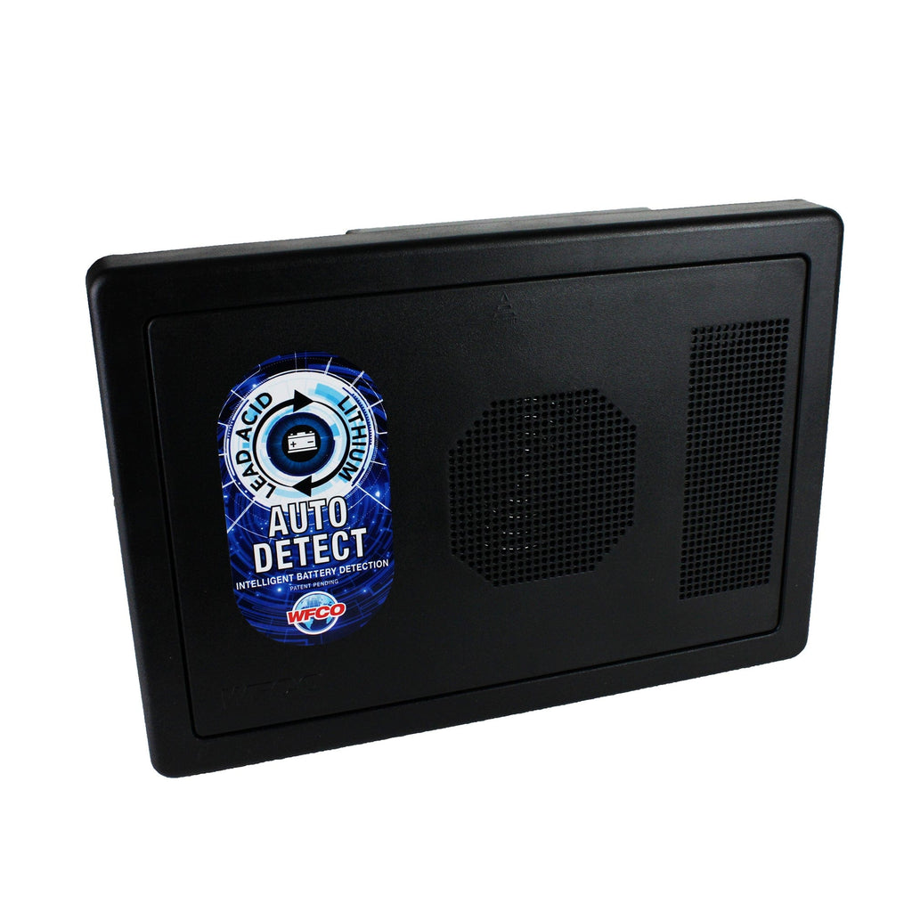 • WFCO’s three-stage battery charging results in longer battery life and is totally automatic. Nominal voltage output modes are a 13.2 VDC range “float” mode, 13.6 VDC range “absorption” charge mode, and a 14.4 VDC range “bulk” charge mode. Short-circuit and reverse polarity protection provide you with further reliability and peace of mind. The cooling fan for the WF-8740 operates only when needed and ensures quiet operation. Front-cooled fan installation does not create additional installation space requirements.